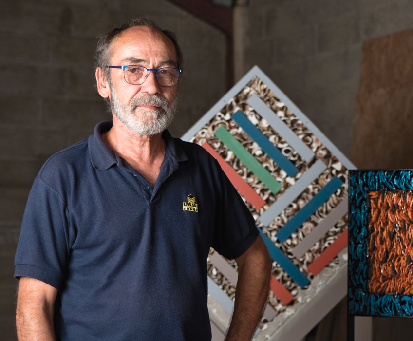 Comme à son habitude, il expérimente dans l’atelier/laboratoire où le matériel de l’entreprise de maçonnerie qui porte désormais son nom, scie diamant, ponceuse, outil de coffrage, de soudure est si souvent détourné de son usage habituel…