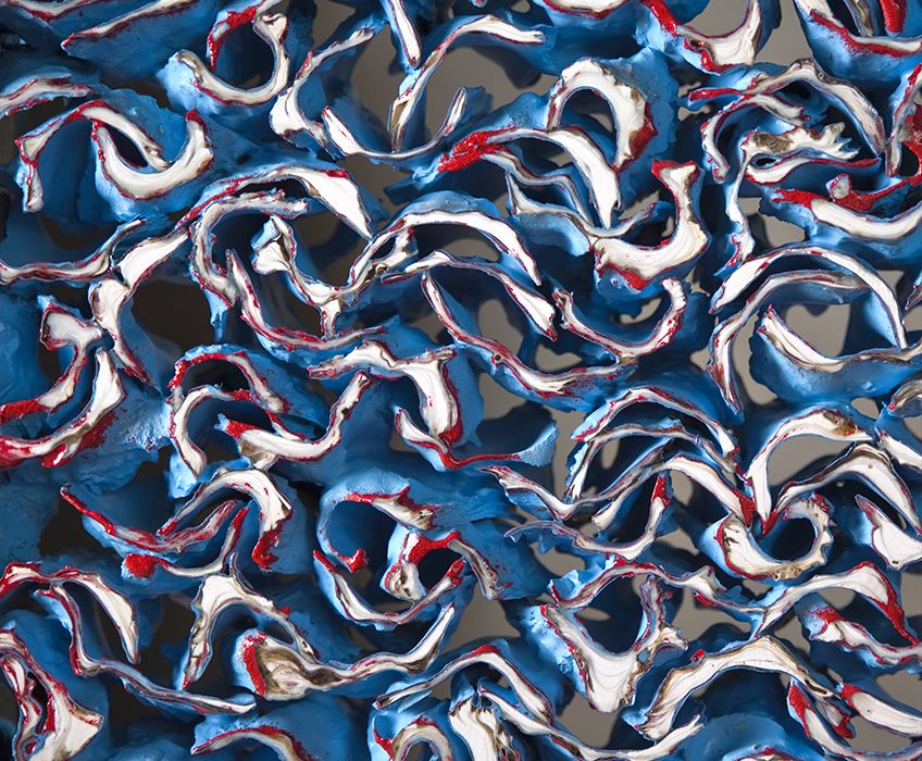 Ses assemblages prennent de la hauteur, explosent en mille formes nouvelles par la magie de ce nouveau matériau, expérimentant à l’aide de nouvelles résines, de pigments, de peintures. Les coquilles sont collées, agglomérées, sciées, teintes pour toujours tirer parti de ces mystérieuses alvéoles en de nouvelles compositions impressionnistes ou abstraites où à nouveau l’artiste retrouve Jasper Jones et Calder. Boulimique, Jean-Claude créé des structures de toutes tailles, des cadres, des mosaïques, des meubles ; d’étranges formes qui semblent d’un autre monde mais portent toutes sa marque propre, sa singulière signature.